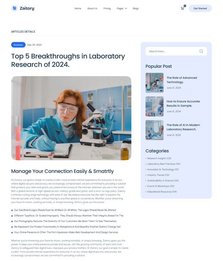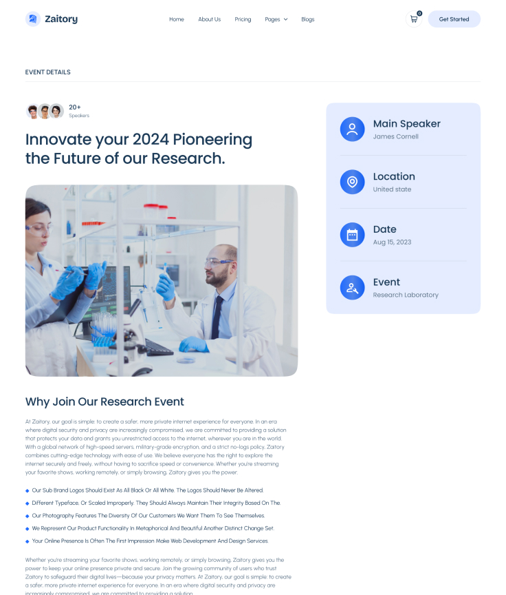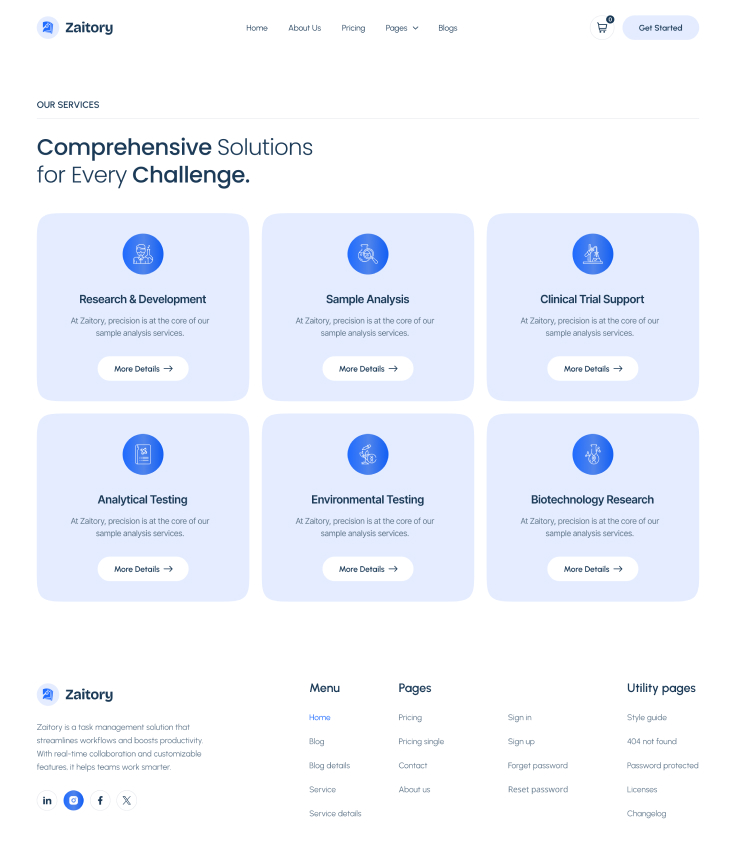 Zaitory template comes with thoughtfully designed inner pages, each crafted to provide a seamless and engaging user experience.