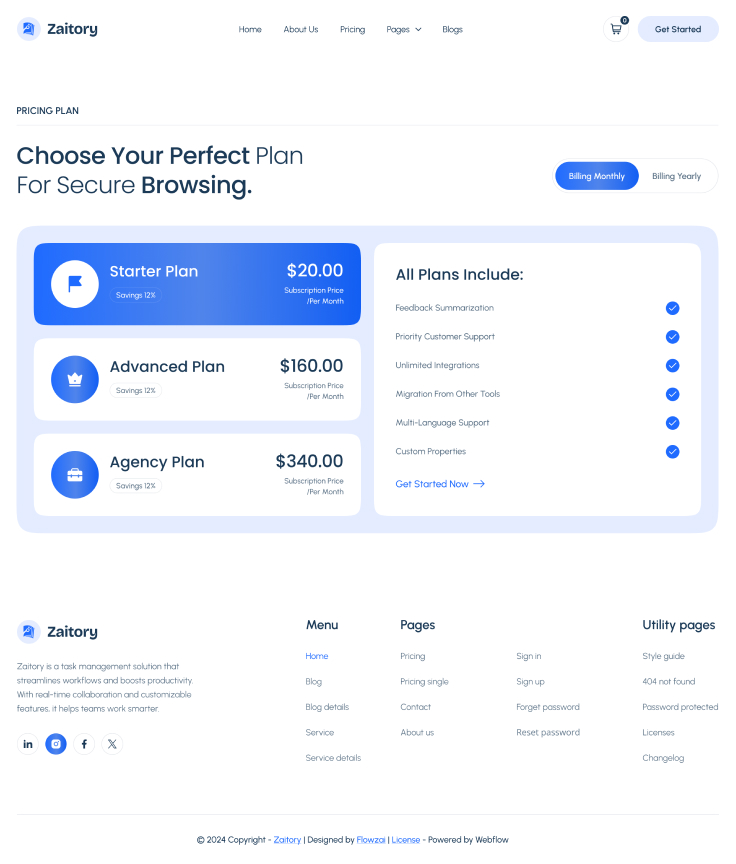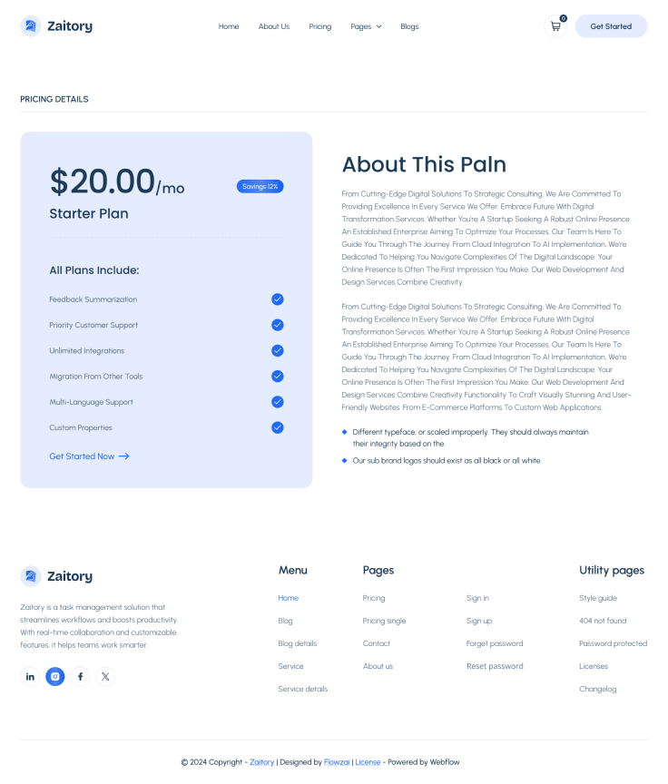 Zaitory webflow template includes 15+ pages in total, with more than 15+ sections, and a home page with amazing features.